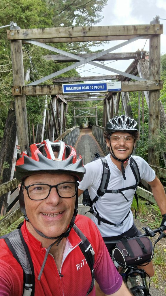 Hem carregat les bicis al tren i cap a Taumarere… a 10 km per hora.