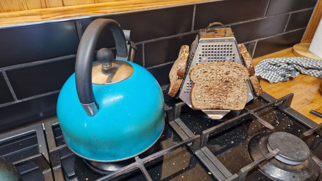 Hem esmorzat al Camp Site, que no te ni torradora elèctrica, ni microones, però sí que té una torradora bastant especial