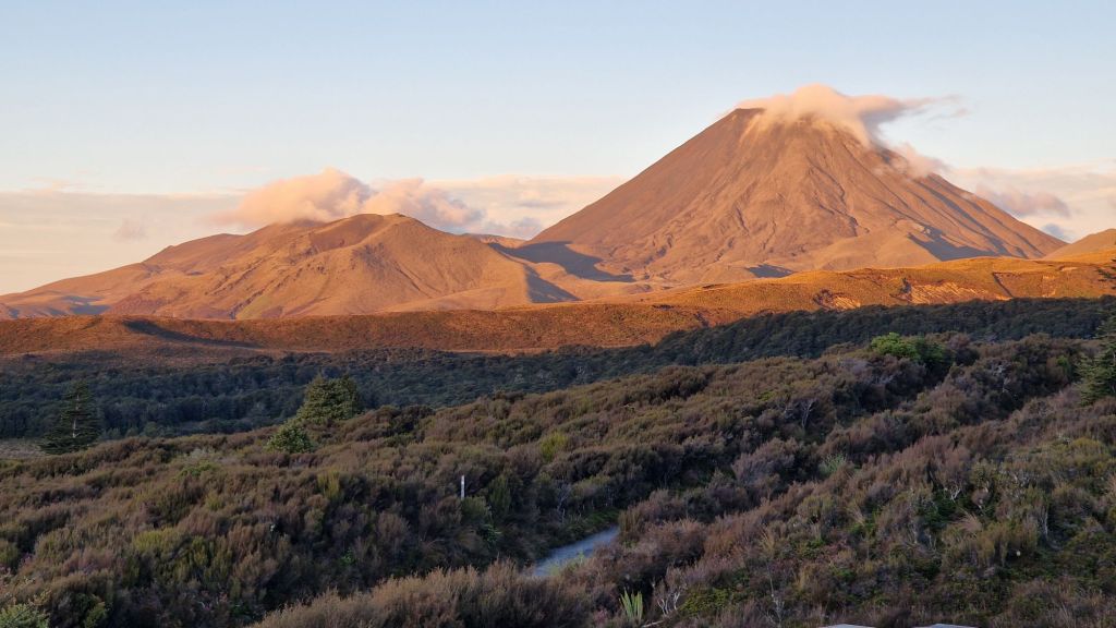 I cap a l’hotel. Una dutxa, posar una rentadora i fer una cervesa amb vistes al Tongariro