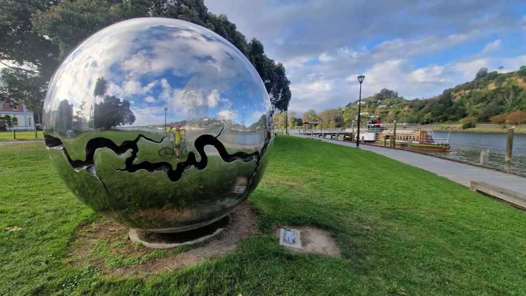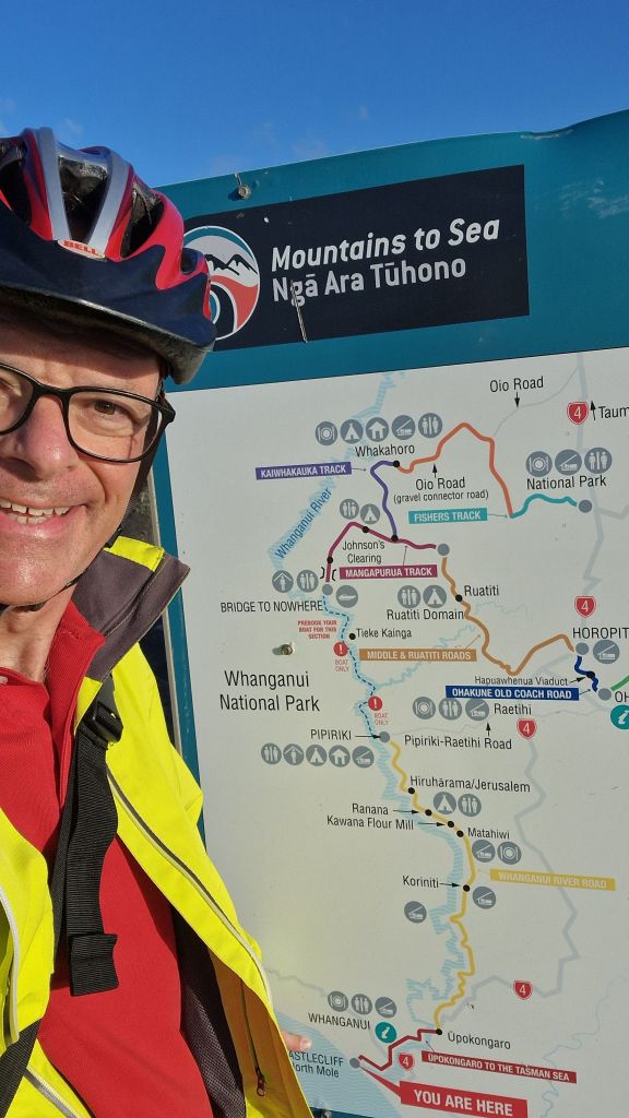 Ja a l’hotel, és primera hora de la tarda i com el temps sembla que va millorant decideixo agafar la bicicleta per a anar fins a la platja, que és el tram final del Mountains to Sea que no vam poder fer ahir. Des de Whanganui fins al mar de Tasmània