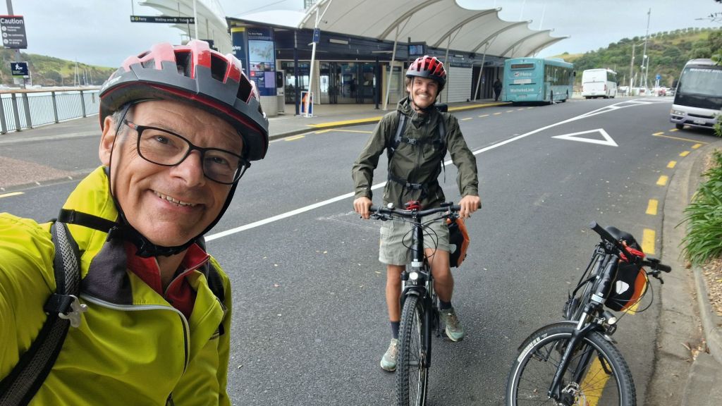 Tota l’hora de dinar ha estat plovent bastant… però ara sembla que està parant. Agafem les bicicletes i tornem al ferry i cap a Auckland. Un cop allà, directa a l’apartament a acabar de fer les maletes… i pesar-les.